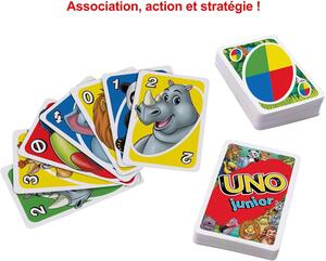 Faites de vos premières soirées jeux un succès avec UNO Junior de Mattel Games. Pensé pour les enfants dès 3 ans et 2 à 4 joueurs, ce jeu de cartes coloré se prend en main en un clin d’œil.
